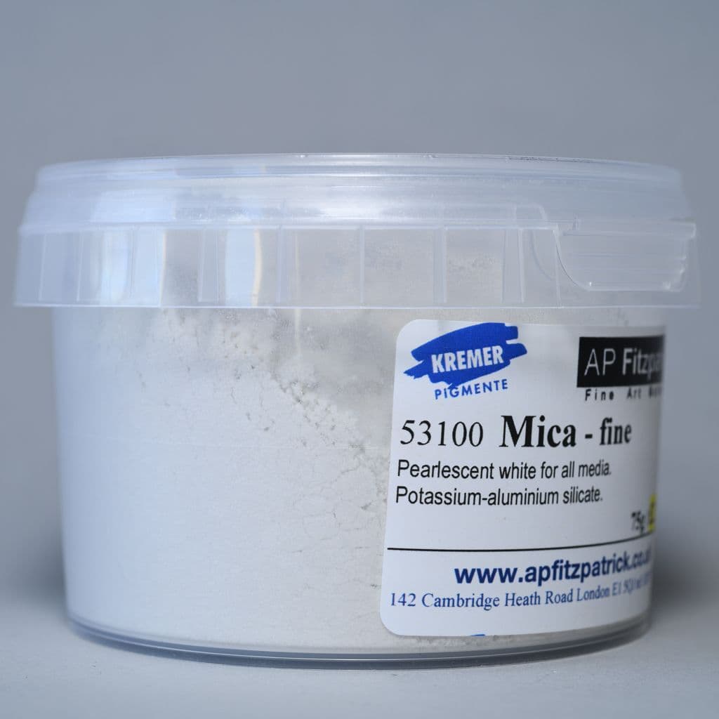 Pearlescent white for all media. Very fine white powder; particle size between 15 and 40 μ