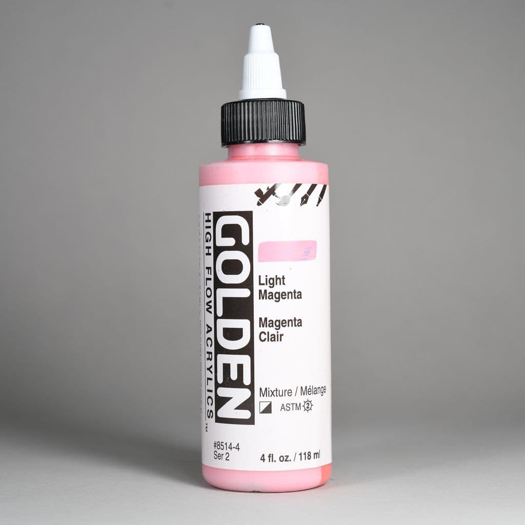 Introduced as a replacement for GOLDEN Airbrush Colours in July of 2013, High Flow offers increased durability of dry paint and a larger palette of colours including Iridescent and Fluorescent colours, and more single-pigment colours that match the other GOLDEN colour lines.