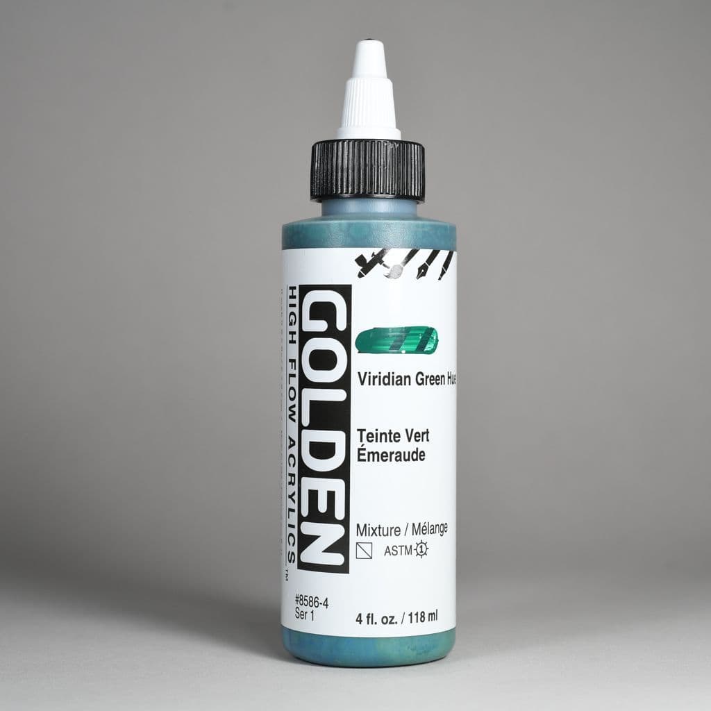 Introduced as a replacement for GOLDEN Airbrush Colours in July of 2013, High Flow offers increased durability of dry paint and a larger palette of colors including Iridescent and Fluorescent colours, and more single-pigment colours that match the other GOLDEN colour lines.